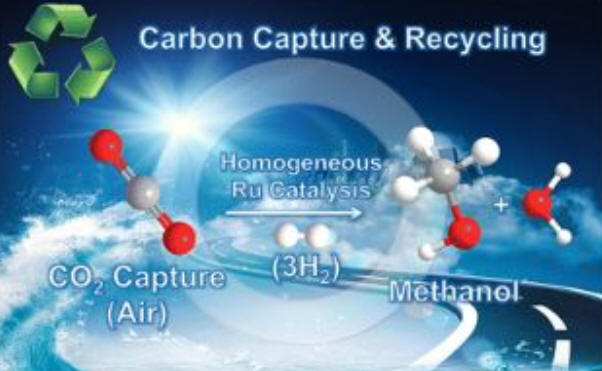來(lái)自于南加洲大學(xué)的化學(xué)教授G. K. Surya Prakash,以及Nobel Laureate和南加大的George A. Olah教授今年發(fā)表在American Chemical Society雜志上發(fā)表的文章,闡述了一個(gè)通過(guò)均相催化劑,把空氣中的二氧化碳轉(zhuǎn)化為甲醇的技術(shù)方法。